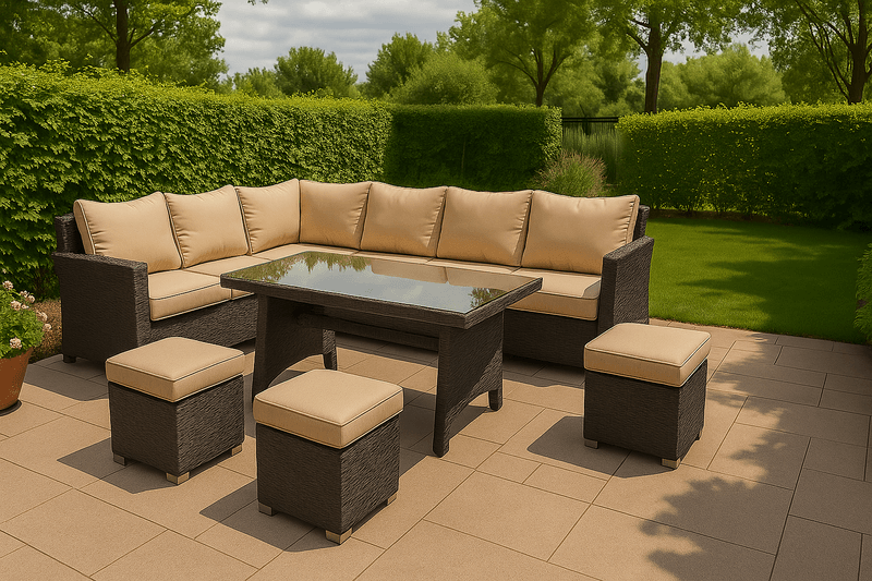 La sección al aire libre de 12C053A-W, fresca y relajada, elevará el confort y la estética de tu espacio al aire libre. Elaborada con mimbre tejido tonos beige serenos, el sofá de dos plazas curvo y la mesa se integran perfectamente en tu terraza, área de piscina o patio. Los cojines gruesos y acogedores están cubiertos con tela de alto rendimiento, resistente a manchas, decoloración y fácil de limpiar. Una práctica mesa asegura que tengas tu bebida siempre a mano. Los cojines adicionales no solo añaden comodidad, sino también un toque de color. Esta sección crea un espacio que desafía a la Madre Naturaleza y envejece con elegancia para proporcionarte años de placer al aire libre.