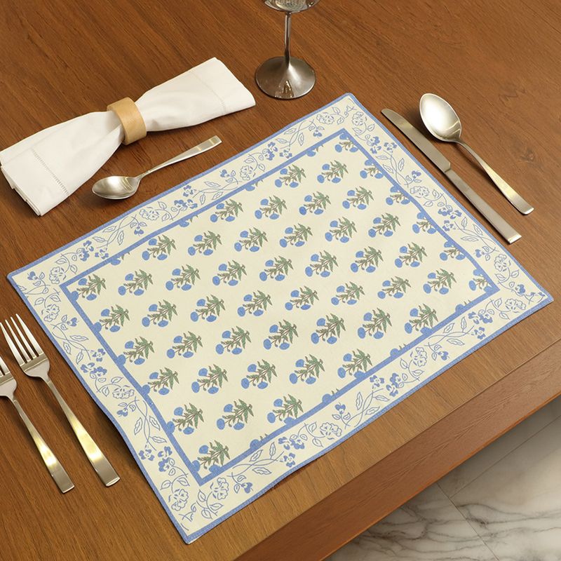Set de cuatro individuales, elegantes estampados en tejido de alta calidad, junto con un borde bien ribeteado.