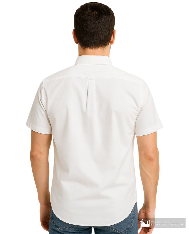 Camisa casual marca Penguin, con diseño sólido color blanco, cuello americano y mangas cortas.