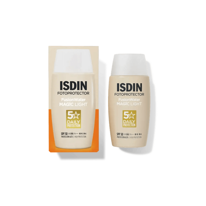 Cuida tu rostro con Fusion Water MAGIC Light, el protector solar facial con color, acción antioxidante y protección Full Spectrum que protege frente a la radiación UVB/UVA, luz azul, IR-A y la polución. Hidrata la piel y aporta una cobertura natural que disimula imperfecciones y unifica el tono sin irritar los ojos.