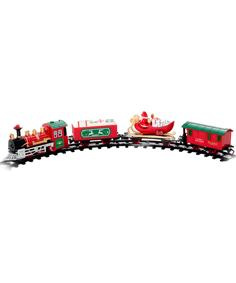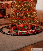 Set de tren navideño con luces y música mide 75x75 cm e incluye una locomotora, vagones y vías decoradas festivamente. Con luces y música, crea un ambiente navideño encantador, ideal para decorar y disfrutar en familia durante las fiestas.