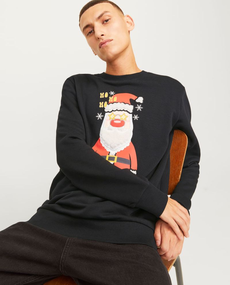 Suéter casual de la marca juvenil Jack & Jones, diseñado con estampado de motivo navideño y cuello redondo.