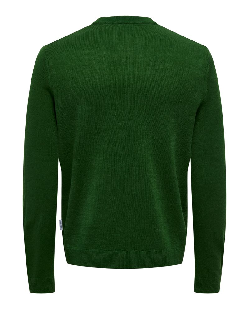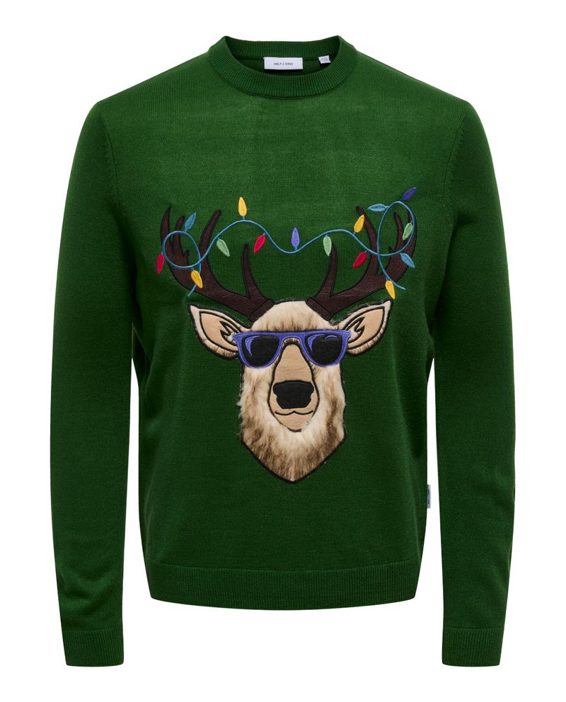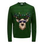 Suéter casual de la marca juvenil Only & Sons, diseñado en color verde con estampado navideño de reno y cuello redondo.